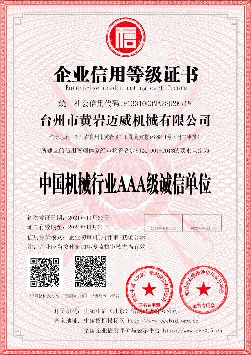 臺州市黃巖邁威機械有限公司融合國內外的先進技術和理念,專業(yè)從事設計、生產和銷售。生產的二十多種規(guī)格型號的全自動吹瓶機、半自動吹瓶機,適用于生產以PET、PP、PE為原料,從5毫升至40升的各類塑料瓶制品,如礦泉水瓶、飲料瓶、化妝瓶、奶瓶、花生油瓶、PET五加侖水桶、太空杯以及燈罩。優(yōu)良的品質、穩(wěn)定的性能、優(yōu)越的性價比,使公司產品不僅暢銷國內市場,并出口到東南亞、中東、非洲以及歐美等國家和地區(qū),深受客戶的好評和信賴。